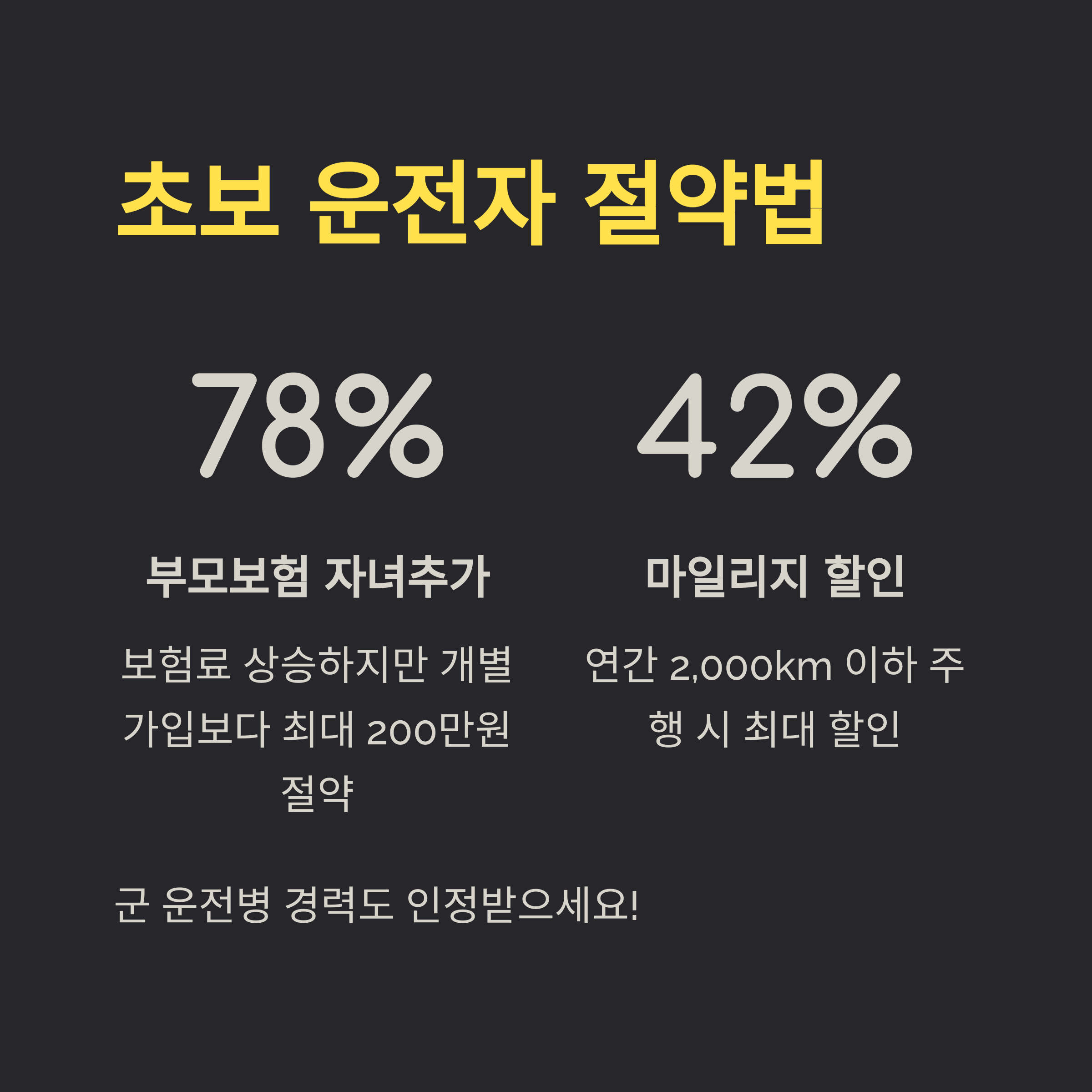 초보 운전자가 보험료를 절약하는 가장 확실한 방법은 부모님 보험에 자녀추가하는 것입니다. 실제 사례를 통해 얼마나 차이가 나는지 확인해보세요.