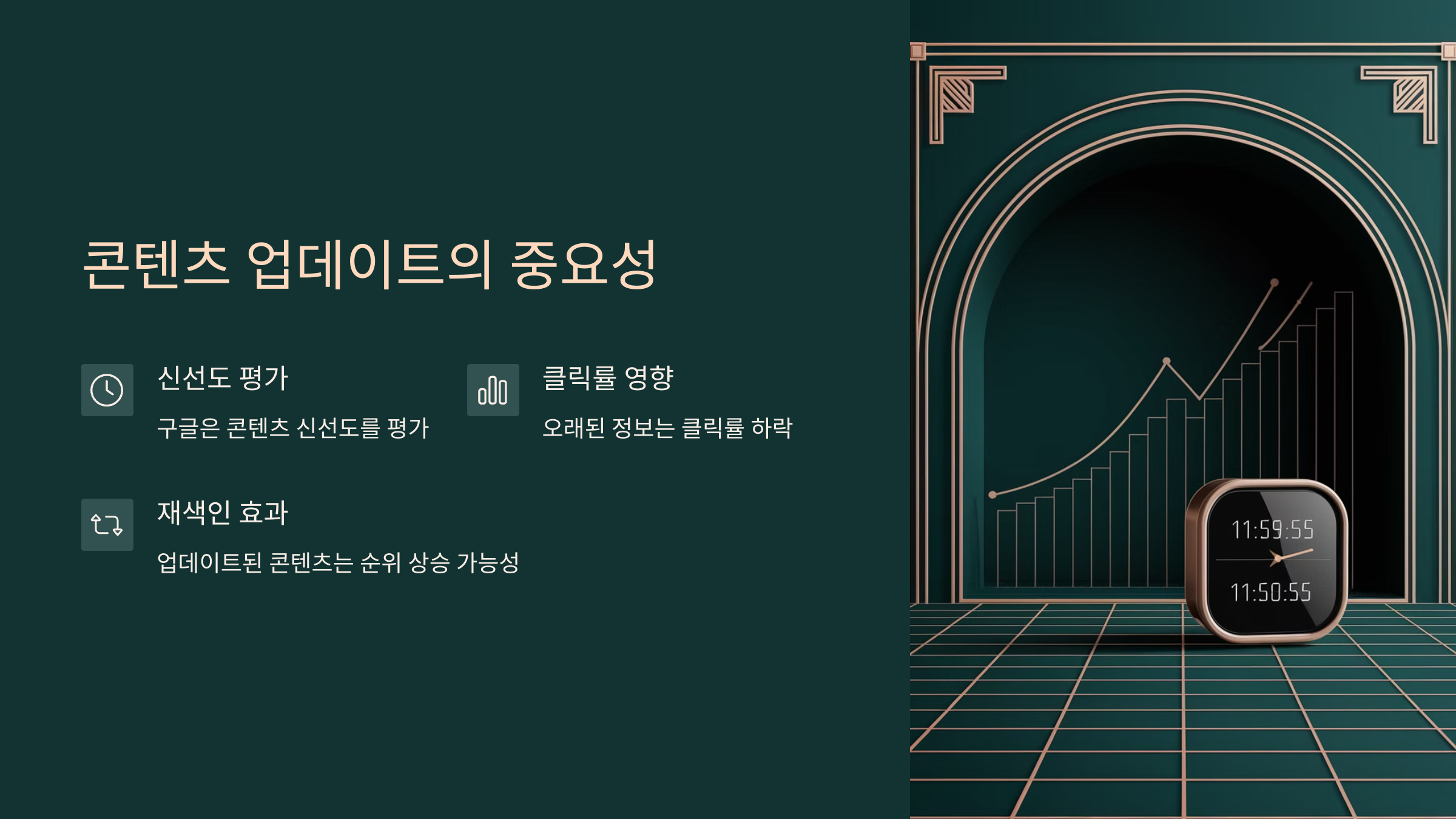 - 📈 업데이트된 콘텐츠는 재색인되며 순위가 올라갈 가능성이 높습니다.