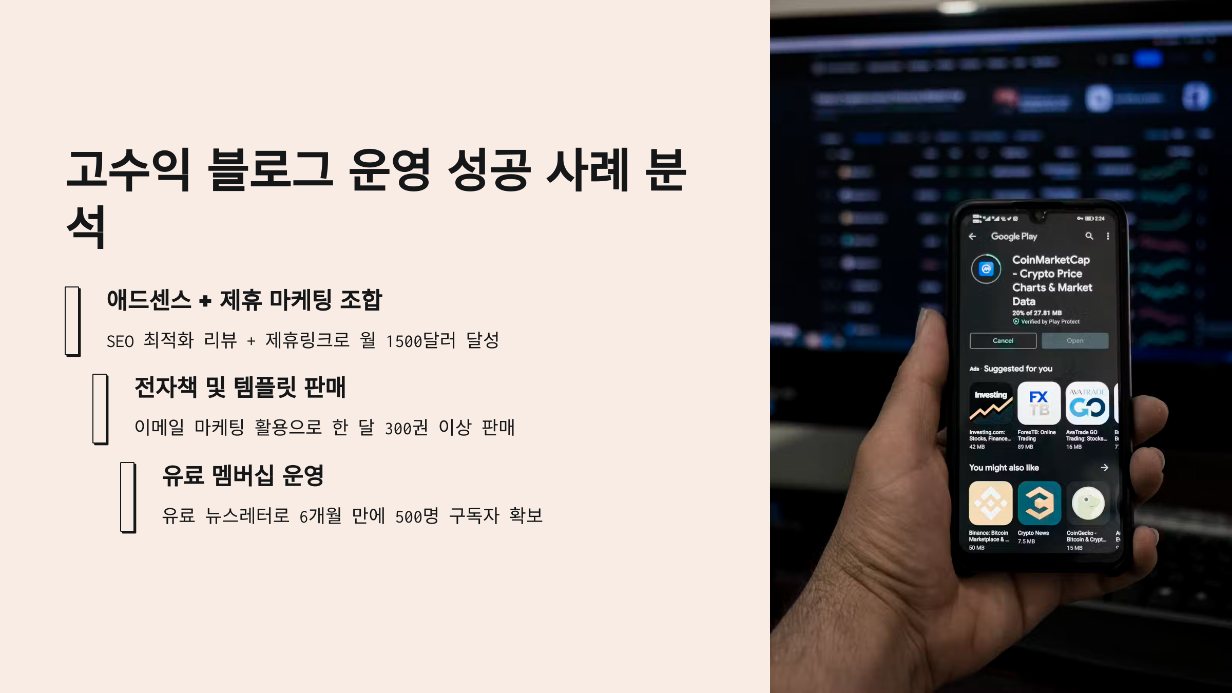 ✅ 수익성을 고려한 콘텐츠 기획 – 트래픽이 높은 키워드뿐만 아니라, 구매력이 높은 독자를 타겟팅