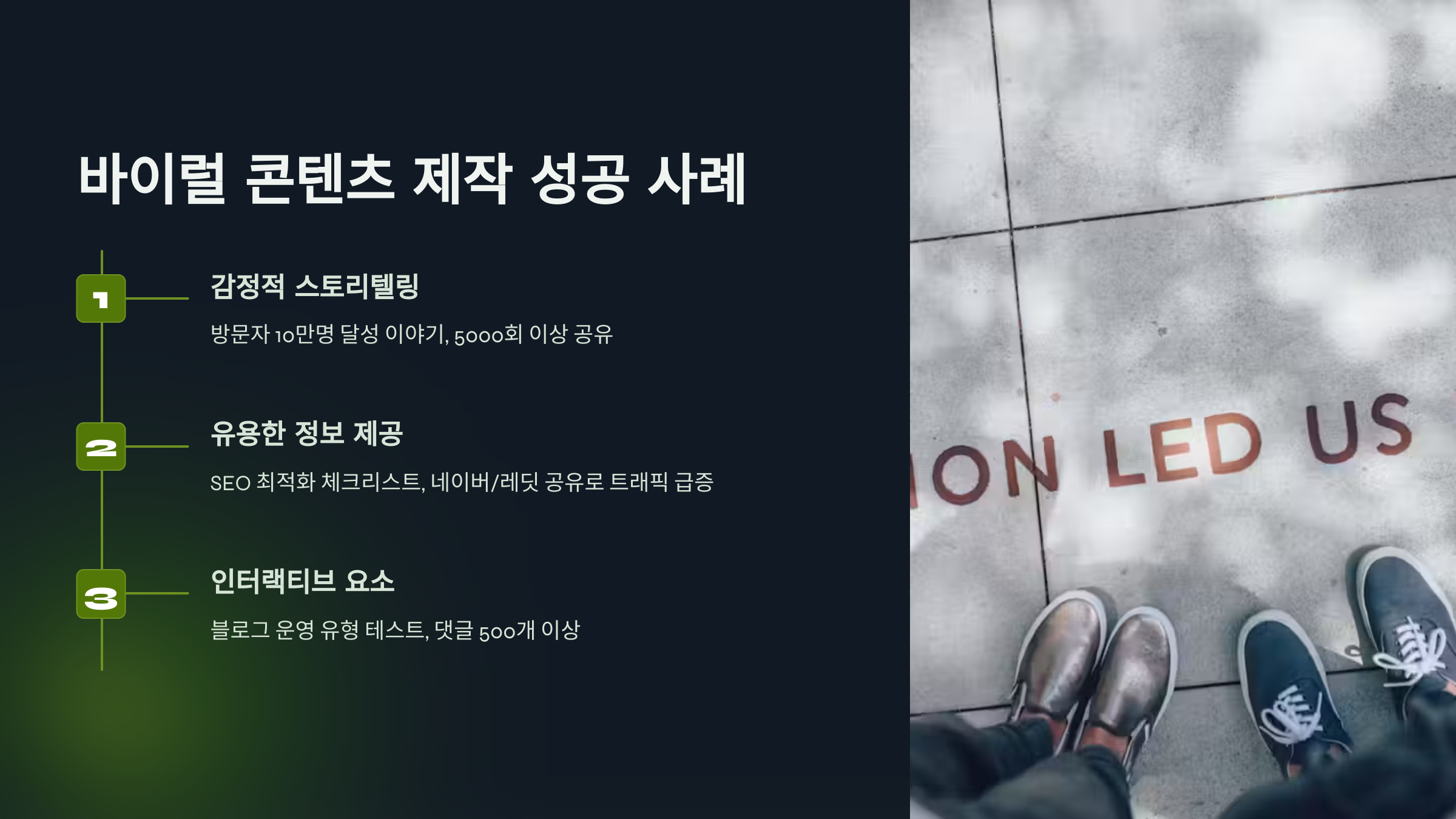 ✔ 단계별 가이드(How-to), 리스트형 콘텐츠(예: '바이럴 콘텐츠 만들기 10가지 팁') 제작