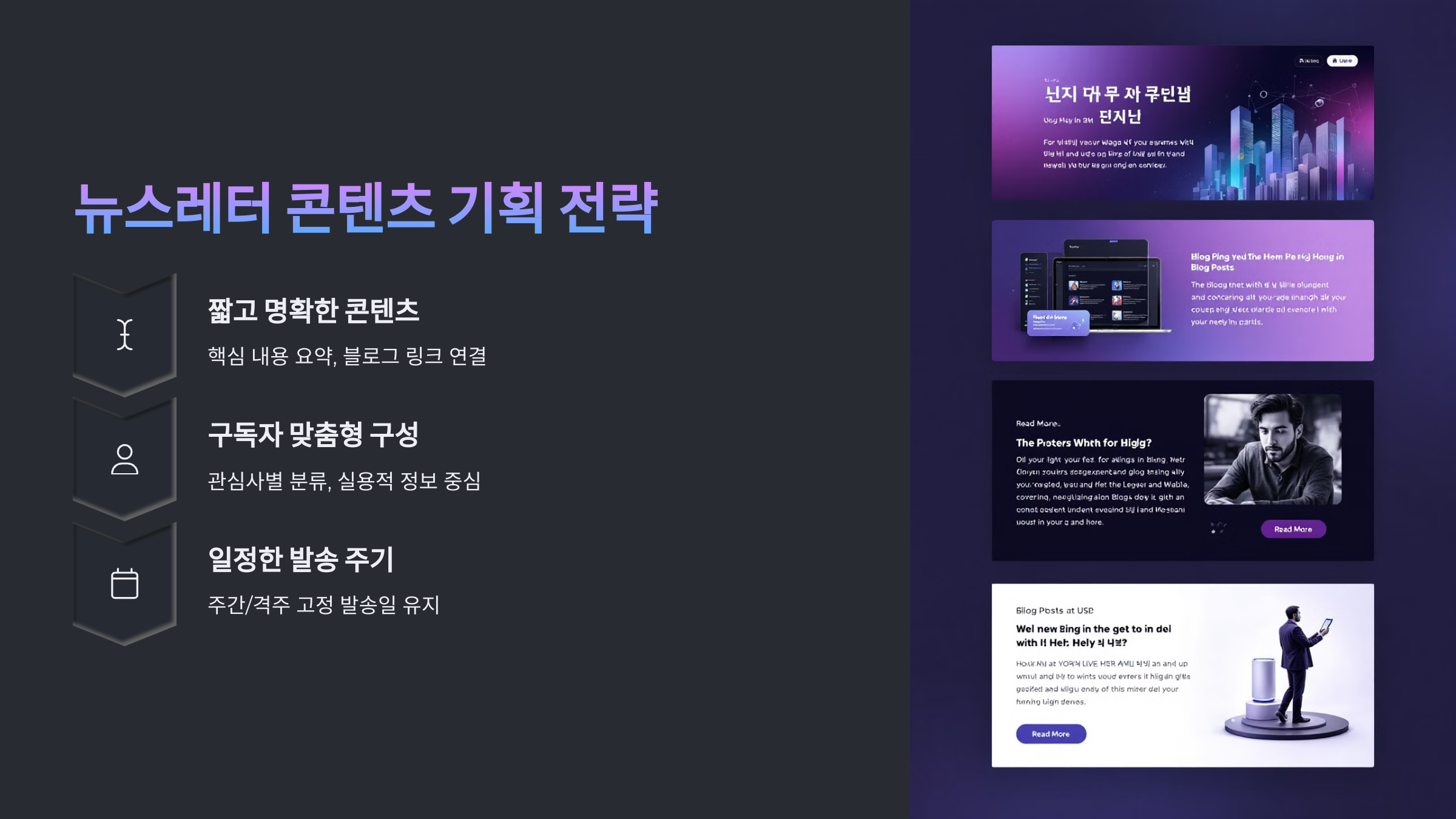 ✔ 뉴스레터는 짧고 유용하게 – 콘텐츠 요약 & 유도 링크 중심