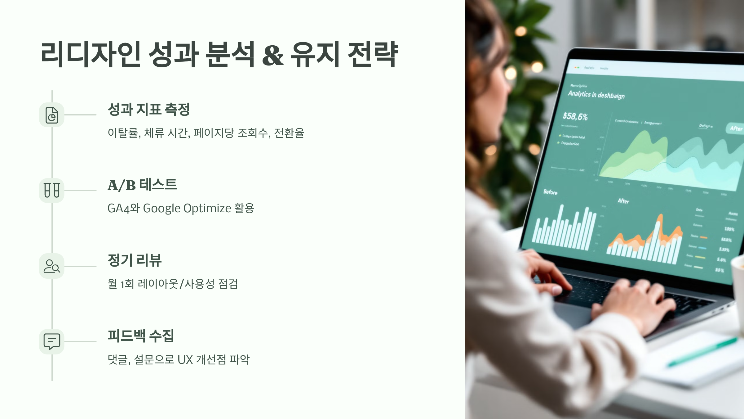 - 방문자 피드백 수집 (댓글, 설문 등) → UX 개선 반영