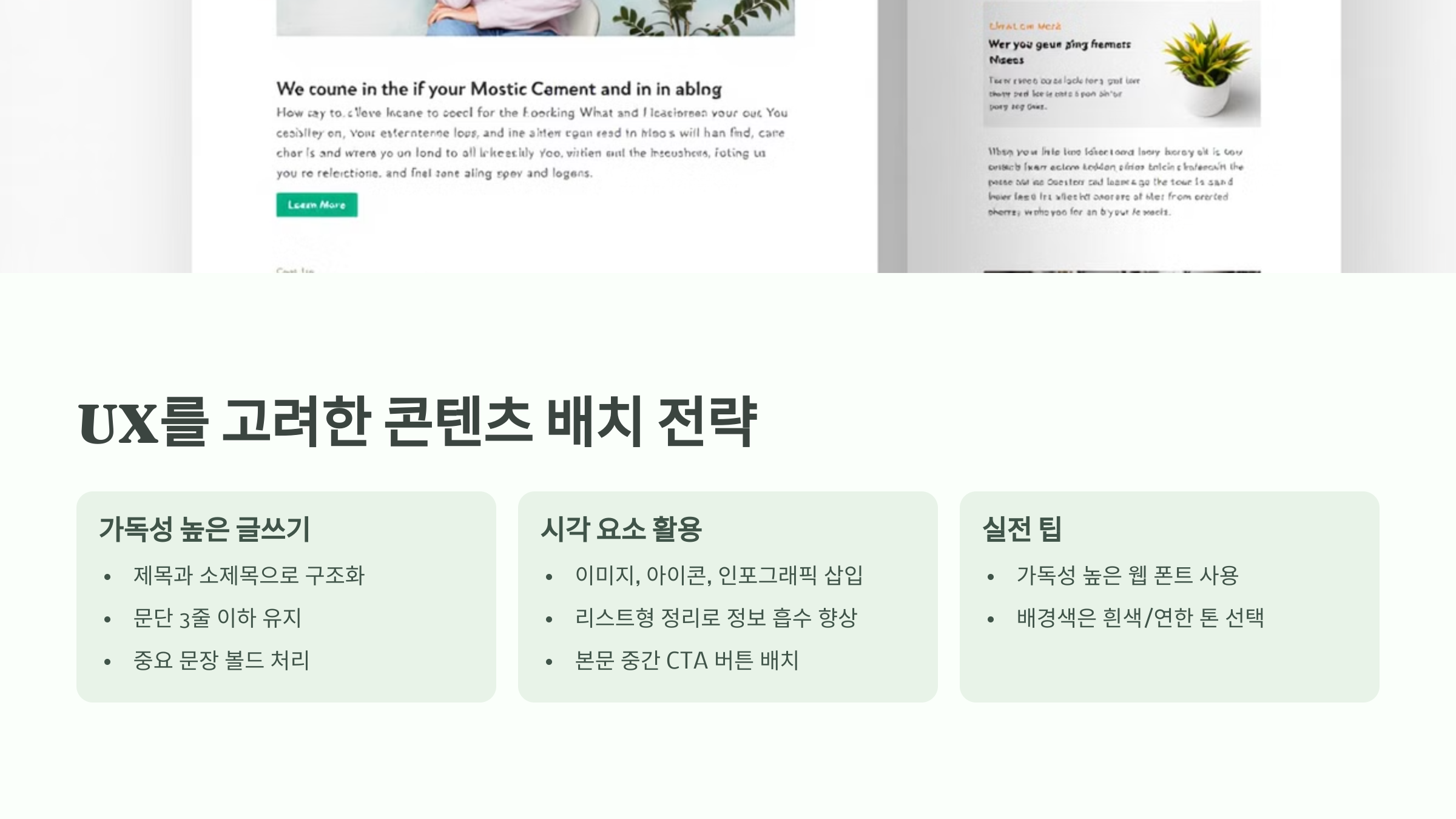 ✔ 콘텐츠는 가독성과 시각적 흡입력을 고려해 구조화