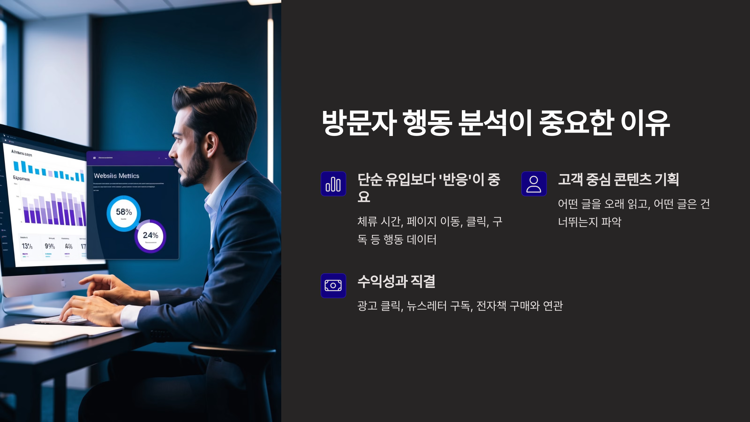 🔹 수익성과 직결: 광고 클릭, 뉴스레터 구독, 전자책 구매 등은 모두 사용자의 행동 패턴과 밀접한 연관이 있습니다.