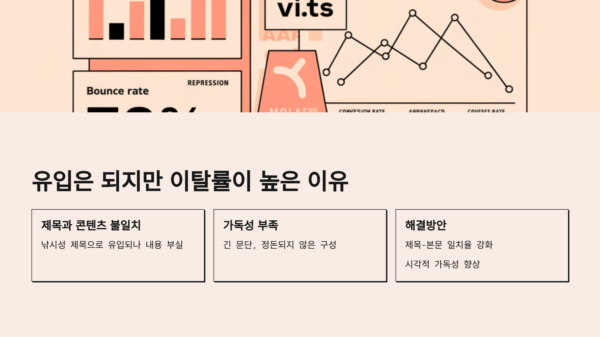 - 낚시성 제목으로 유입은 되지만, 내용이 부실해 이탈로 이어짐
