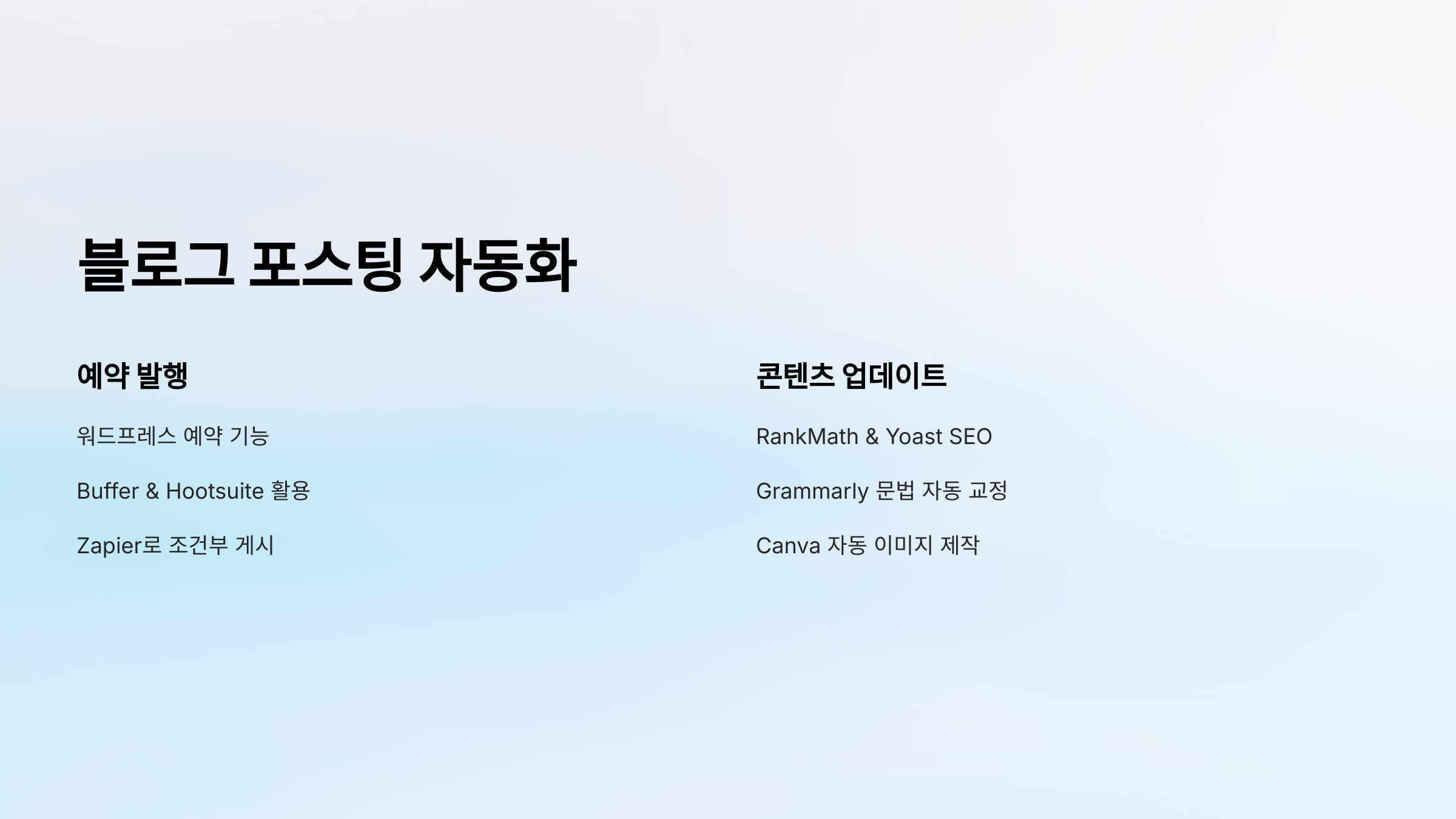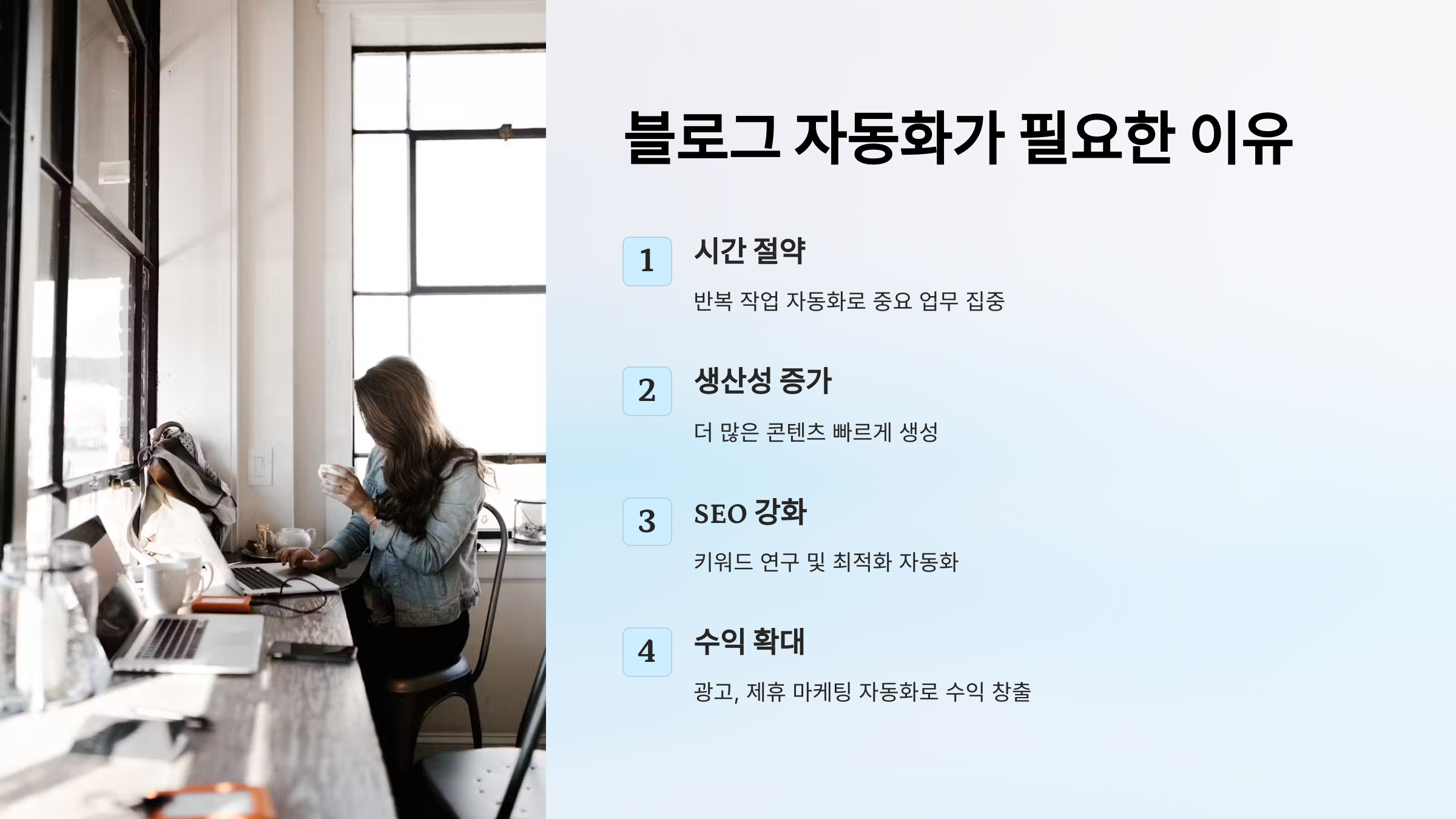 💡 블로그 운영 자동화는 단순한 시간 절약을 넘어, 트래픽과 수익을 극대화하는 데 중요한 역할을 합니다.