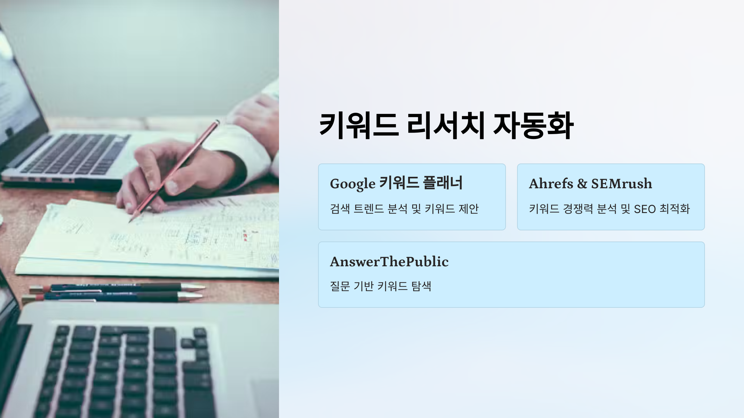 ✔ 키워드 리서치 자동화를 통해 검색 유입 최적화