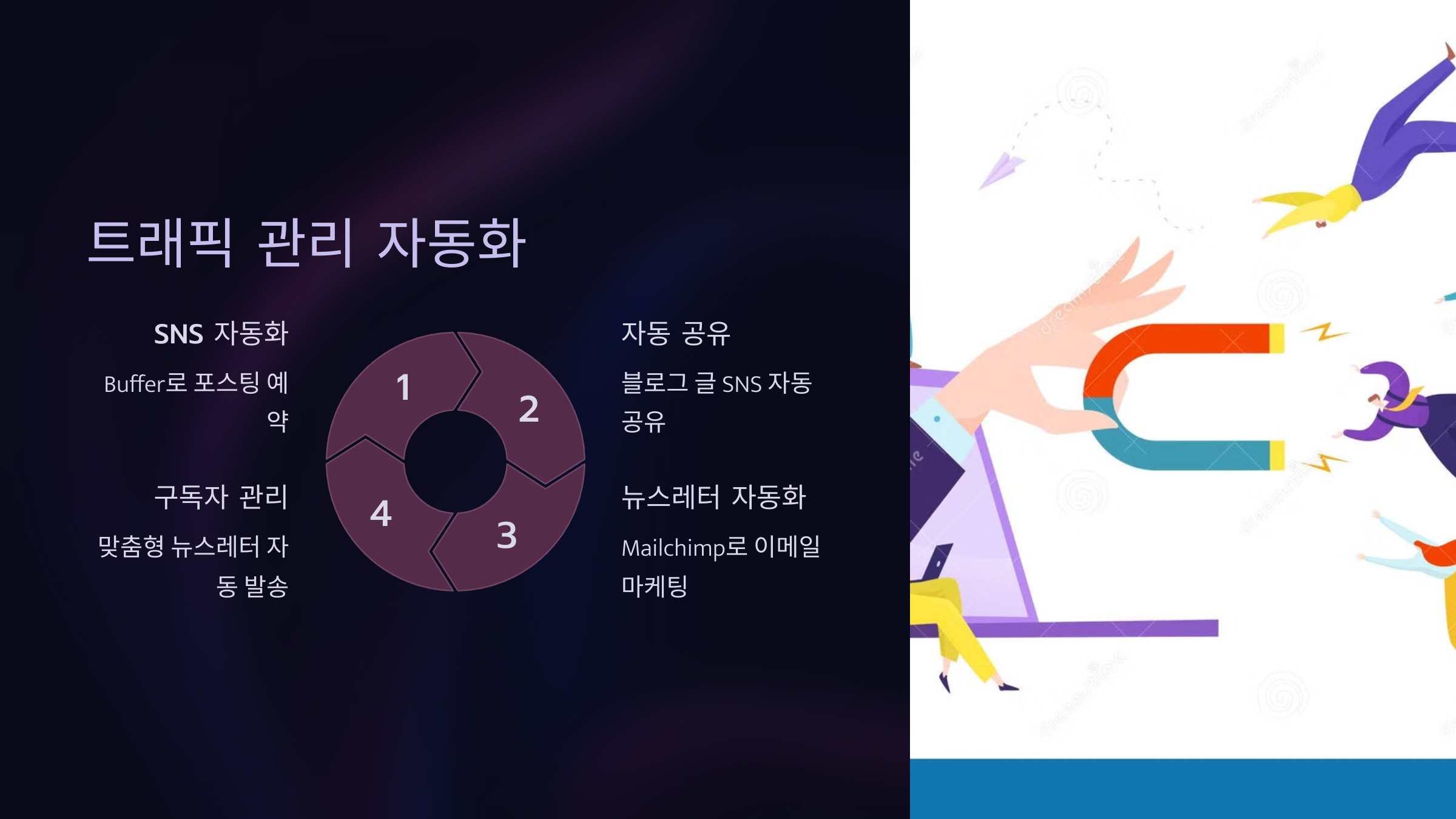 ✔ SNS & 뉴스레터 자동화를 통해 지속적인 트래픽 유입 유지