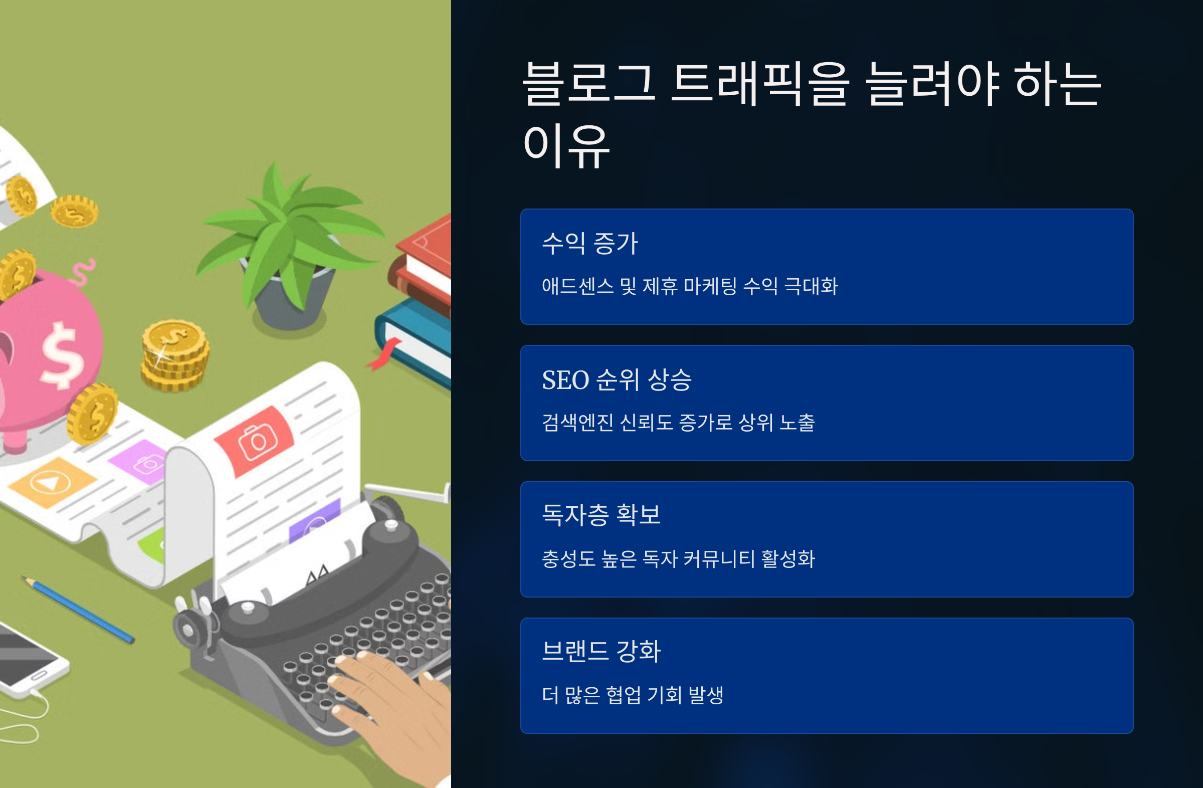 ✅ 애드센스 및 제휴 마케팅 수익 증가 – 방문자가 많아질수록 광고 수익 극대화 가능