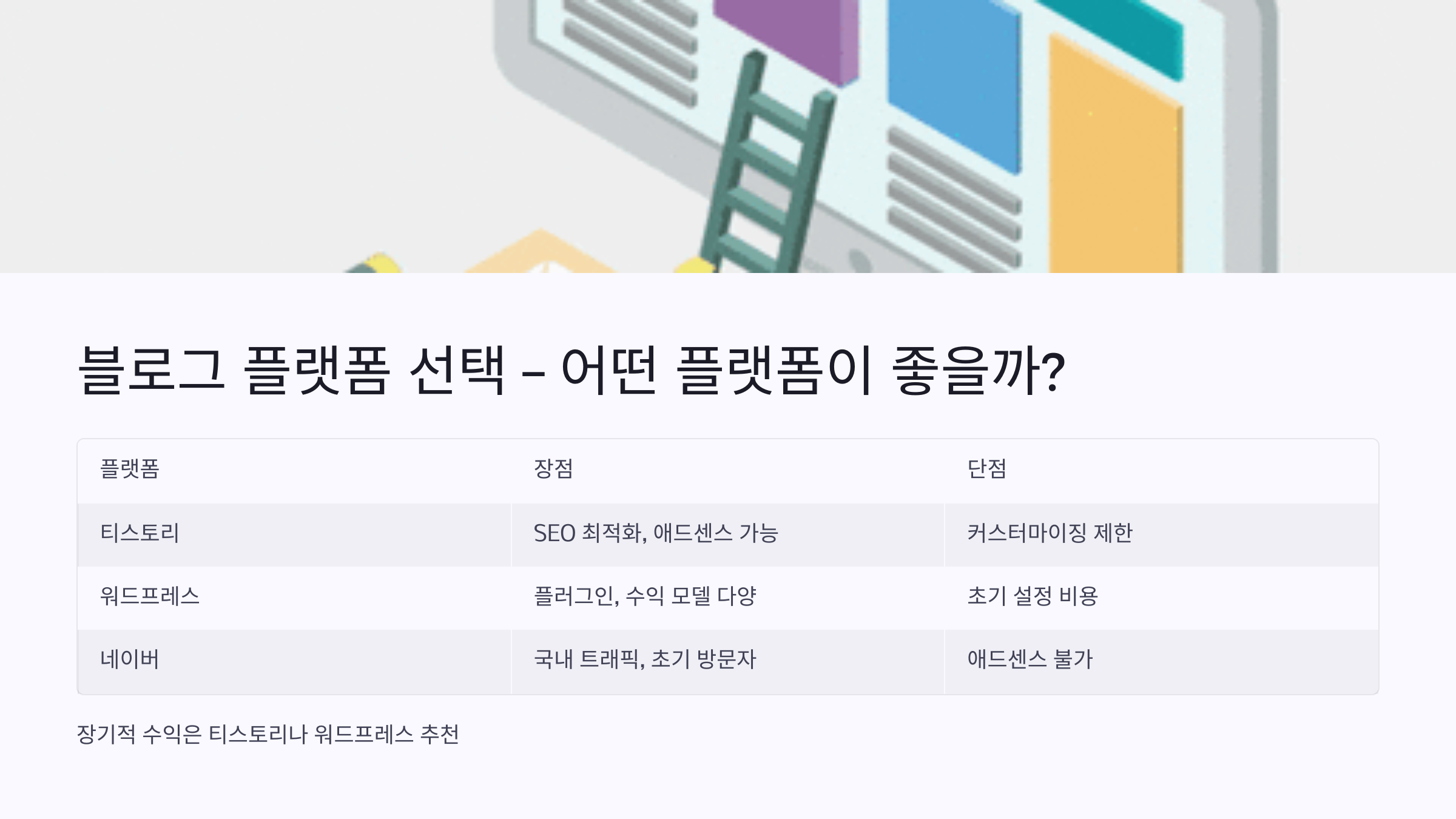 💡 장기적으로 수익을 창출하려면 티스토리나 워드프레스 추천