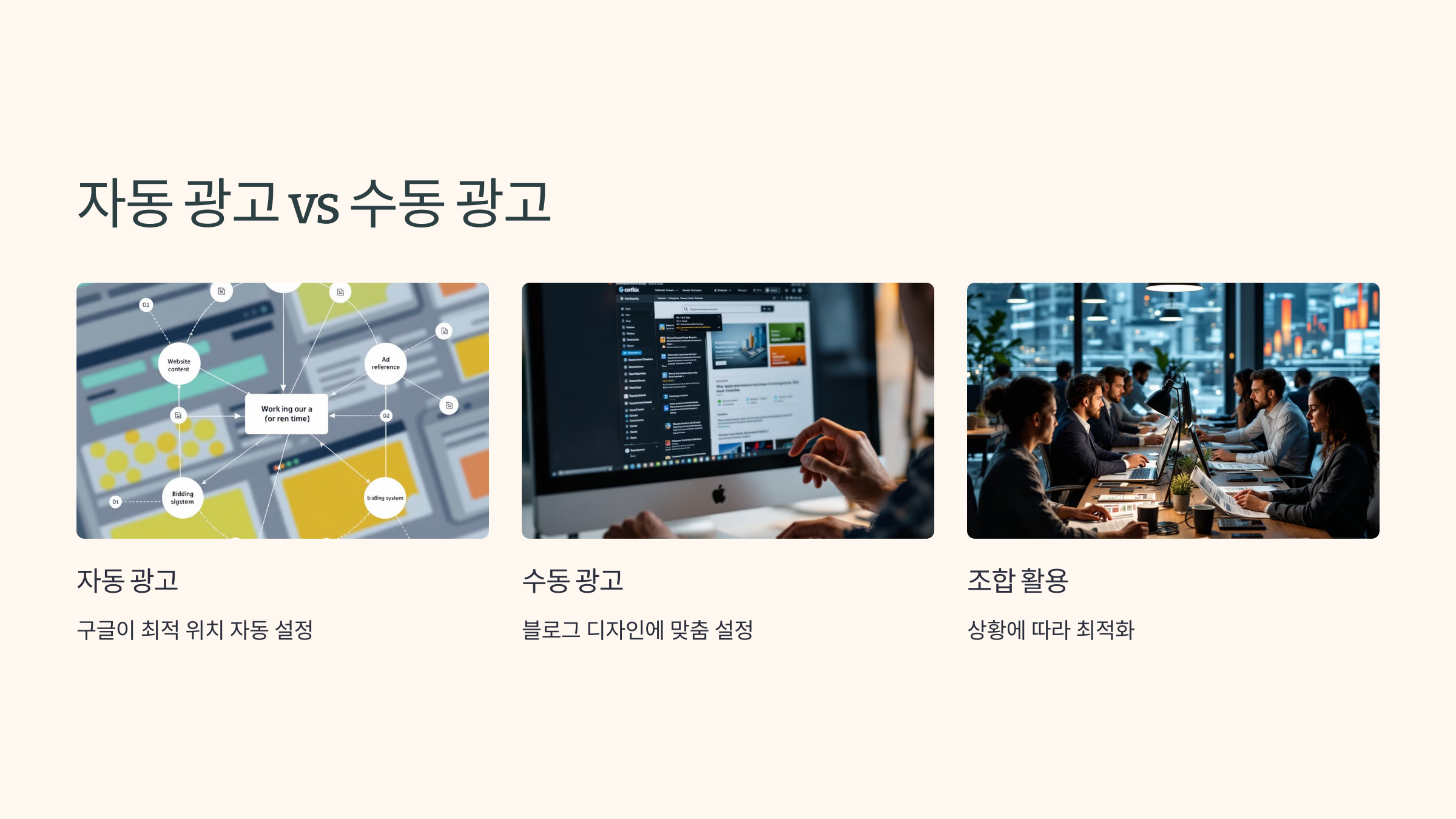 - 상황에 따라 자동 광고와 수동 광고를 조합하여 최적화