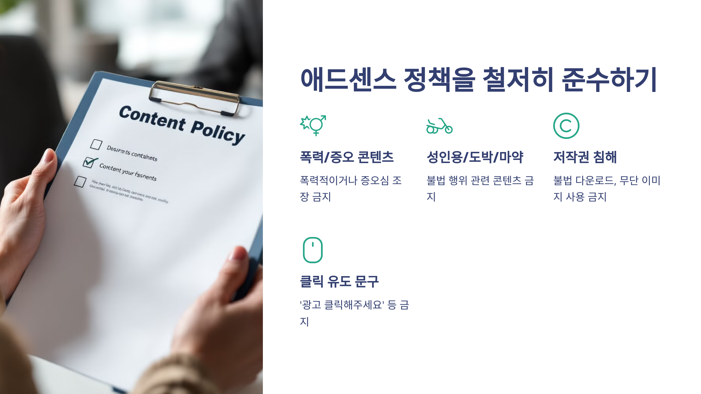 ✅ 애드센스 정책 위반 (금지 콘텐츠 포함)