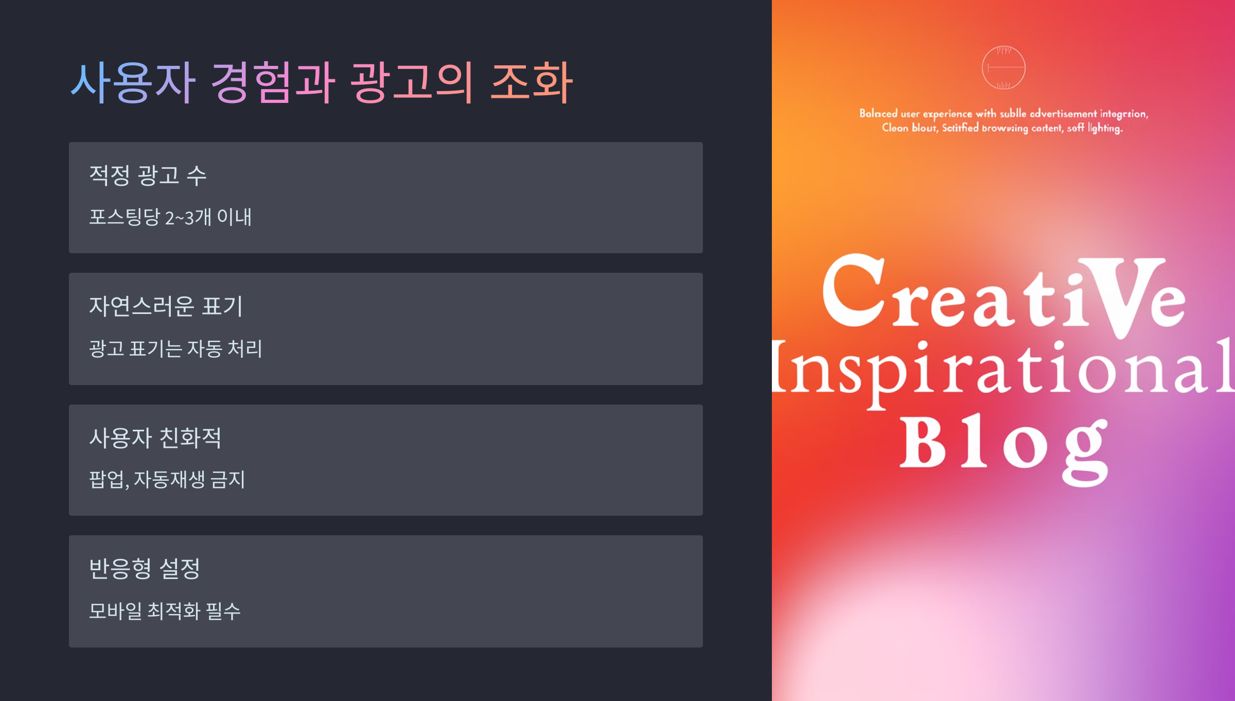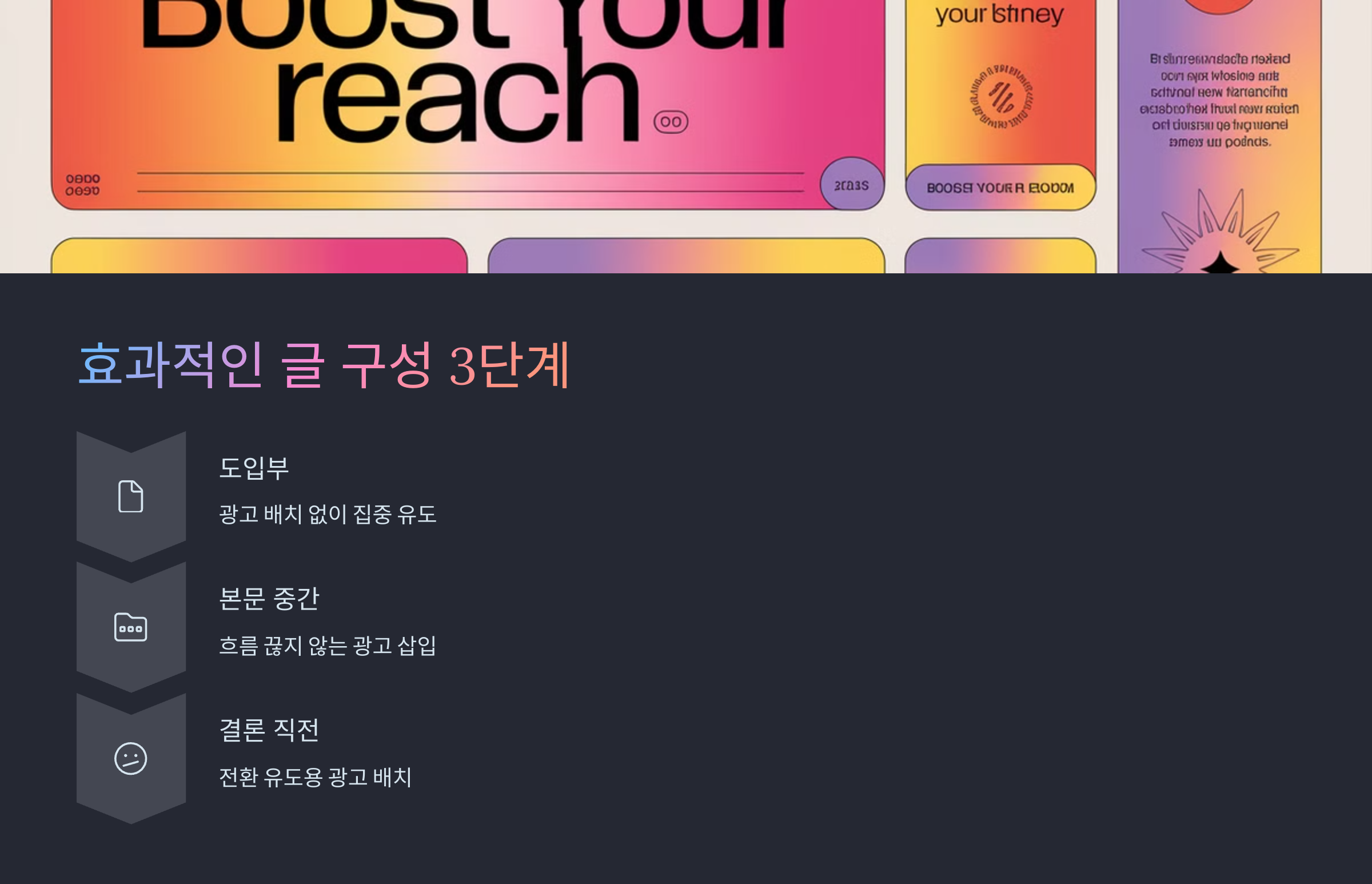 | 디스플레이 광고 | 본문 중간, 결론 앞, 사이드바 | 중단과 전환 지점에 삽입 |