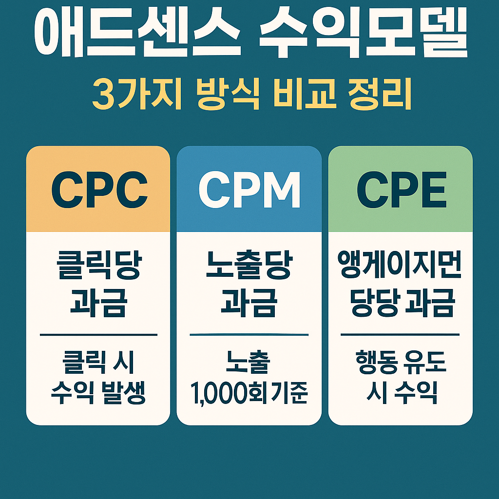 애드센스 수익은 어떻게 발생할까요? CPC, CPM, CPE라는 세 가지 광고 수익 방식에 대해 정확히 이해하고, 어떤 전략으로 활용할 수 있는지 비교 정리해드립니다.