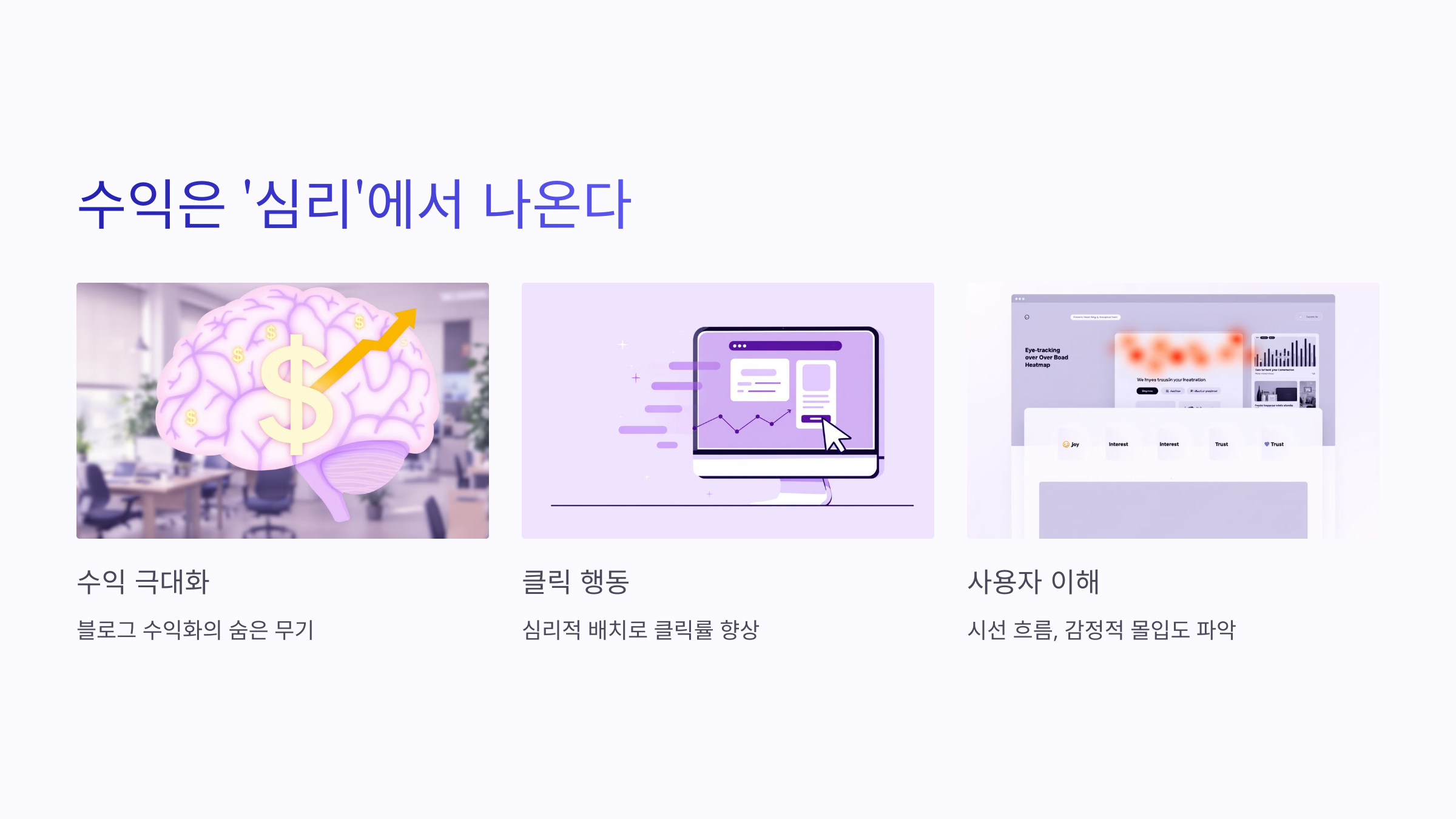 행동 심리학에서는 '사람은 감정적으로 동요될 때 행동한다'는 연구 결과가 있습니다. 블로그 글을 읽는 동안 사용자가 감정적으로 몰입하는 지점을 파악하고 그 지점에 **행동 유도 광고(Call To Action)**를 배치하는 전략이 효과적입니다.