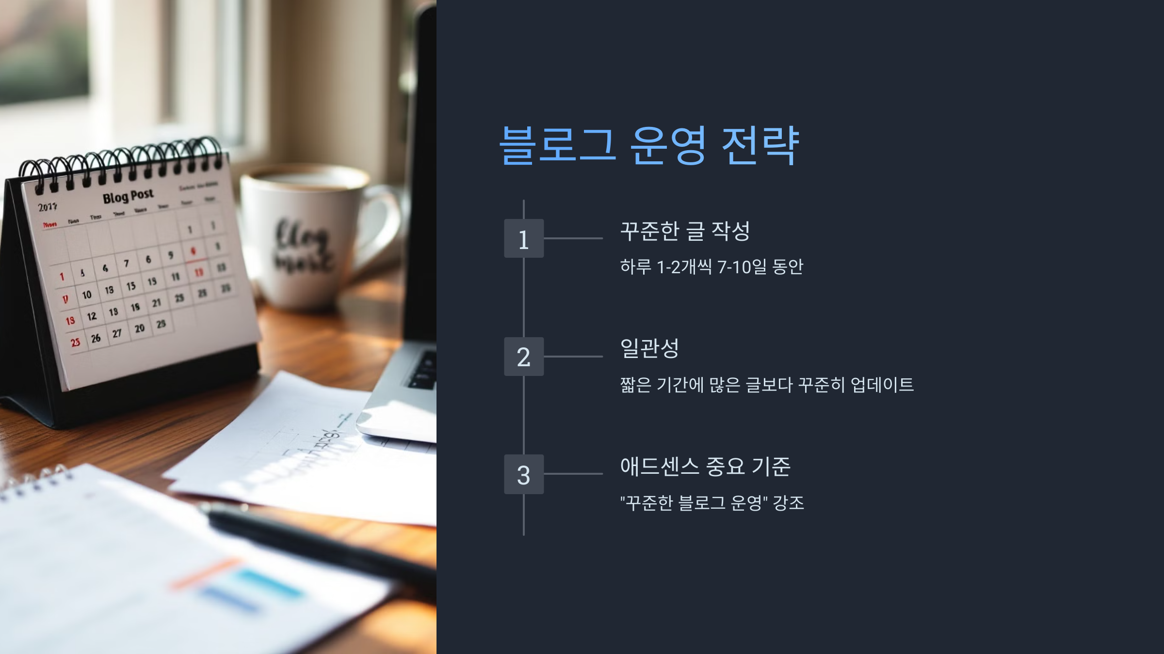 애드센스는 "꾸준한 블로그 운영"을 중요하게 생각합니다.