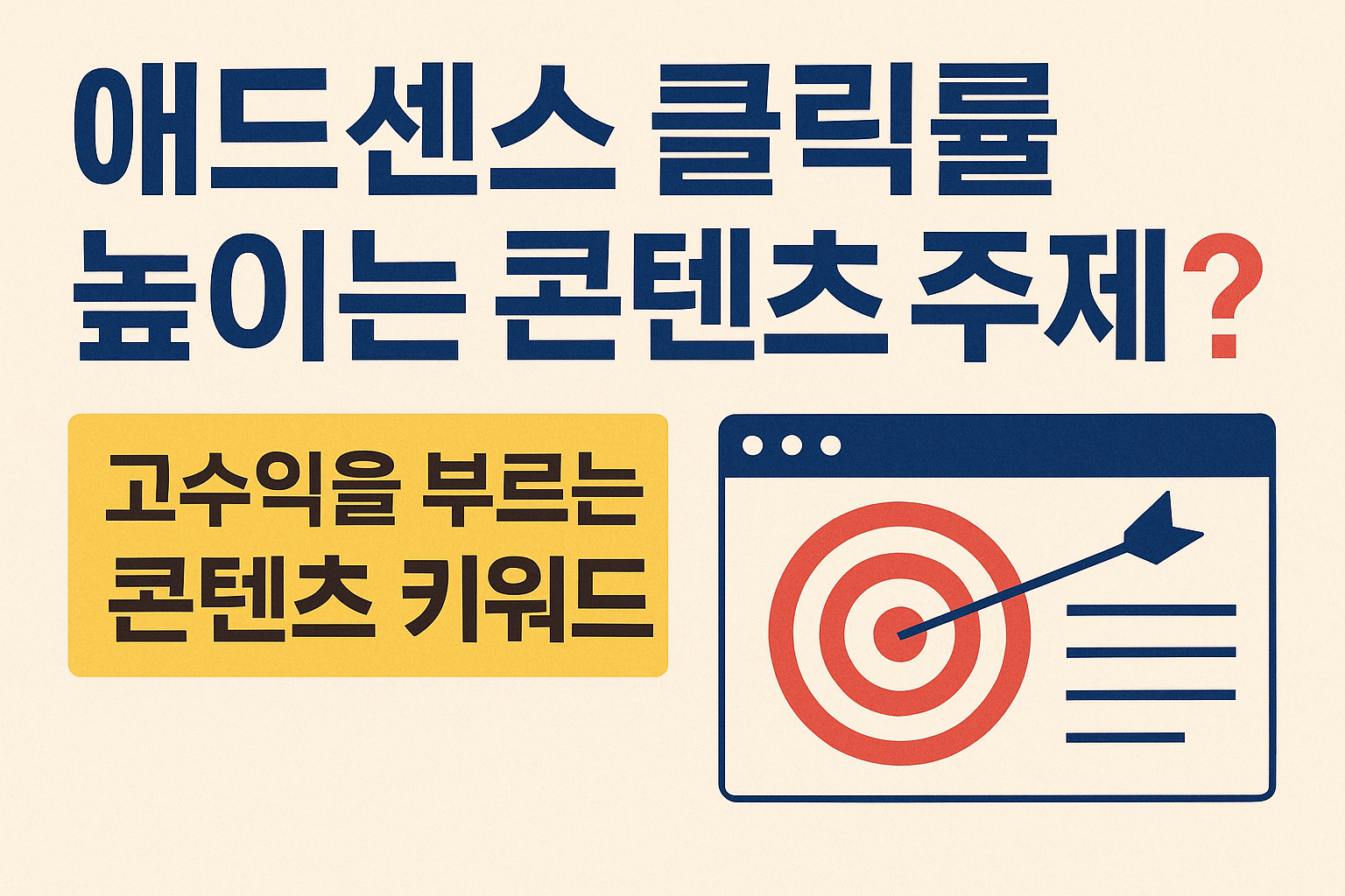 블로그에 광고는 붙었는데 클릭률이 낮다면? 애드센스 클릭률을 높이기 위해서는 단순히 광고 위치가 아니라 콘텐츠 주제 선택이 핵심입니다. 지금 바로 고수익을 부르는 주제를 알아보세요.