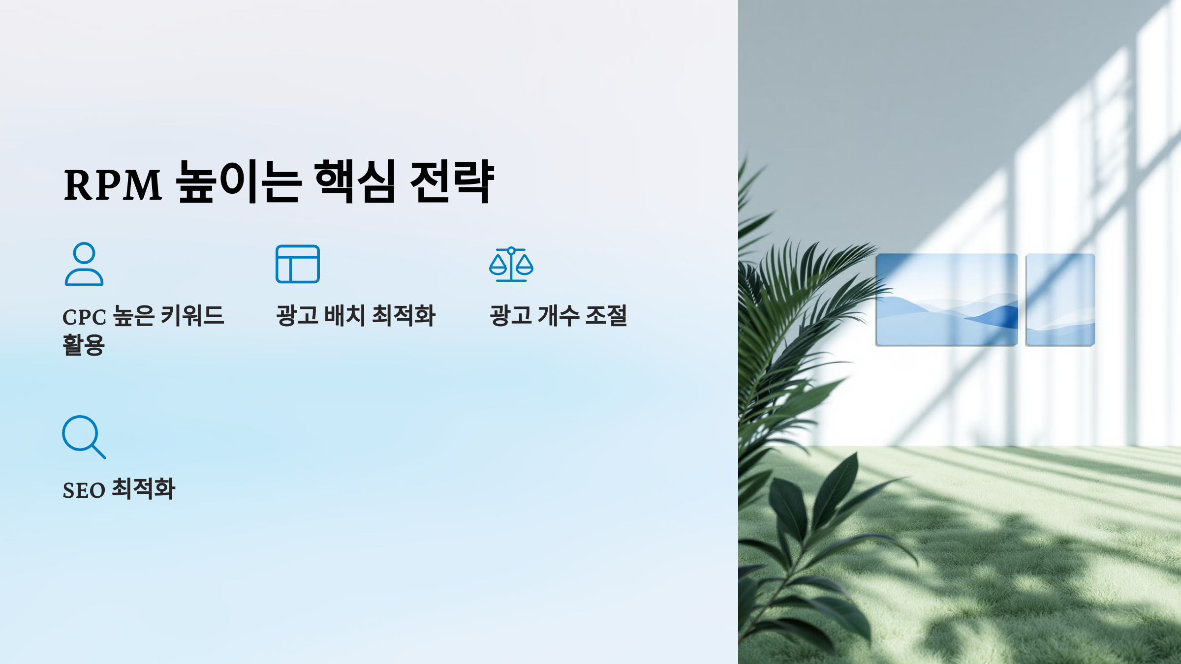 애드센스에서 RPM(1000회 페이지 노출당 수익)을 높이는 것은 수익 극대화의 핵심입니다.
