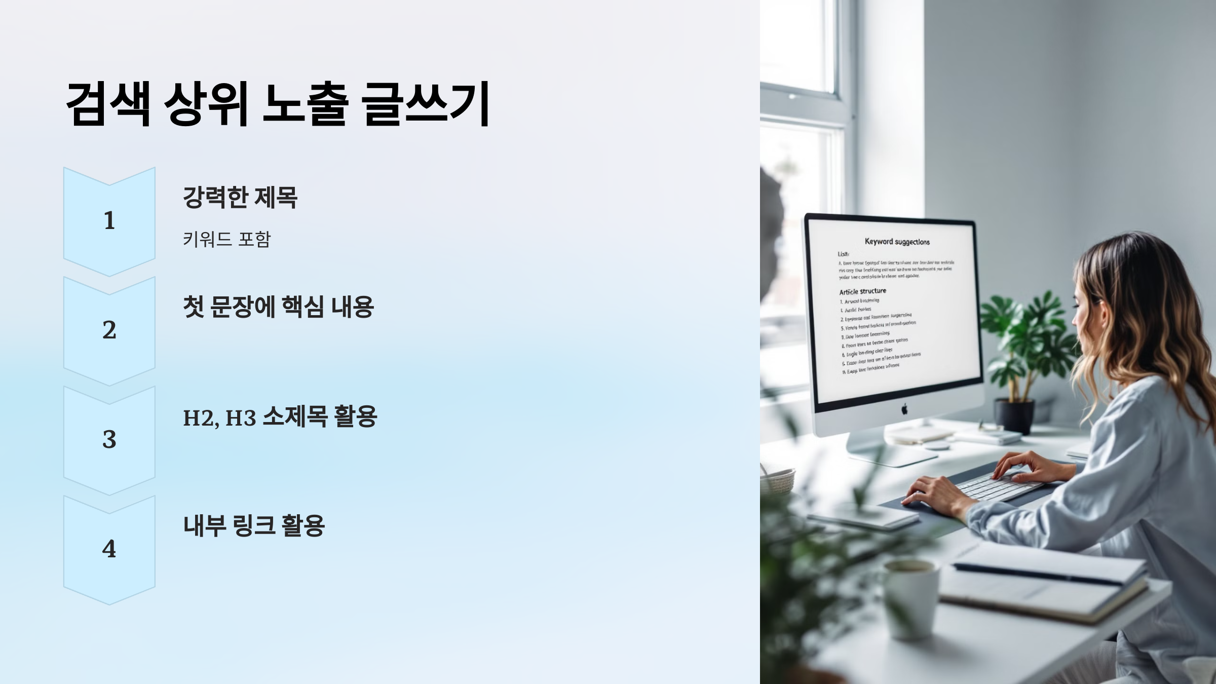 이번 글에서는 검색 최적화된 글쓰기 전략을 정리하겠습니다.