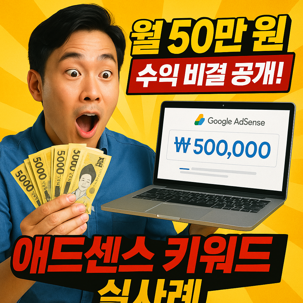 애드센스로 월 50만 원 수익을 올린 실제 키워드 사례를 공개합니다. 블로그 수익화에 관심 있는 분들을 위한 실전 전략과 노하우를 담았습니다.