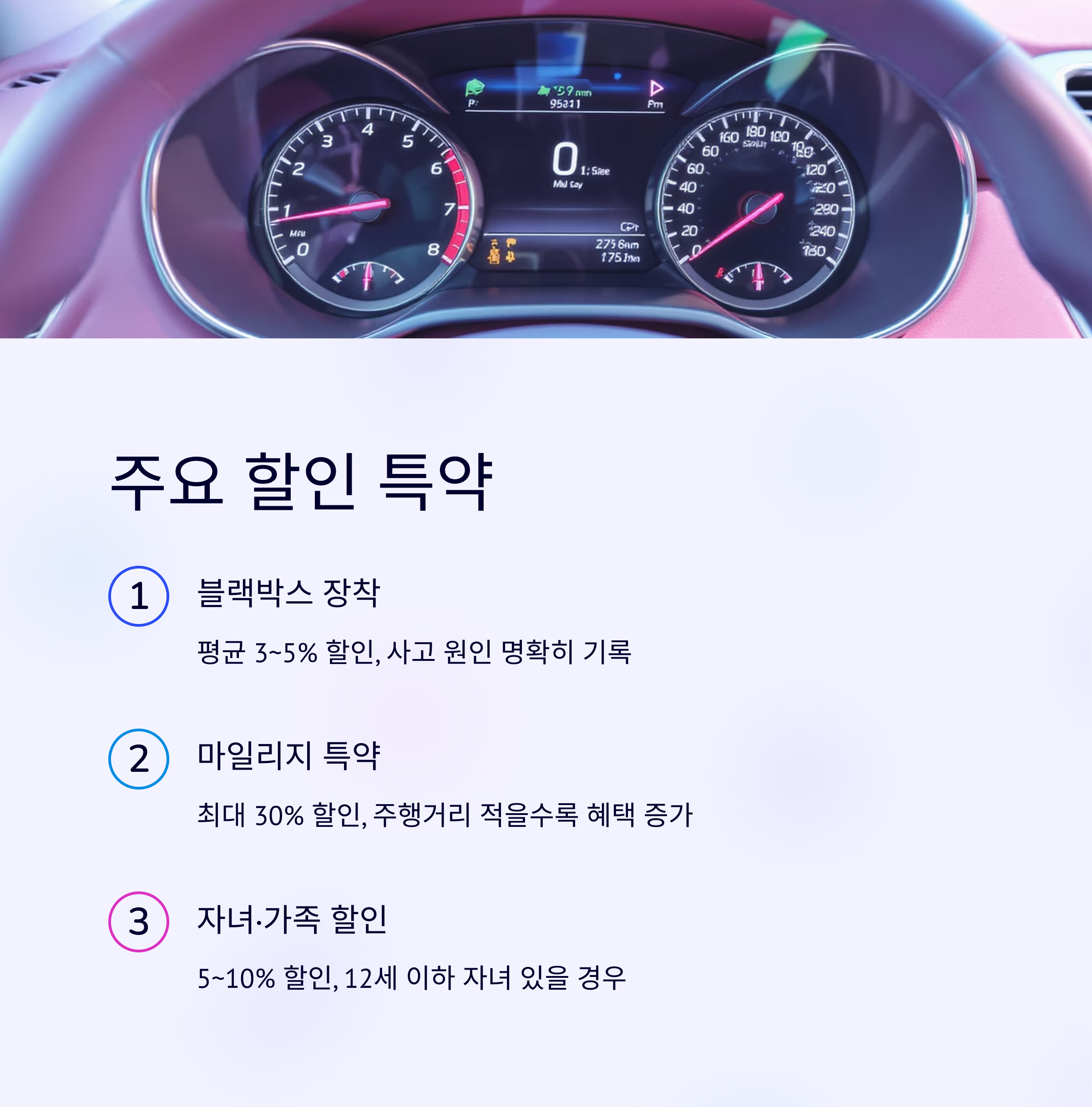 자동차 보험료 최대 40% 절약하는 방법! 할인 특약 총정리 (3) | 2025.06.20 |