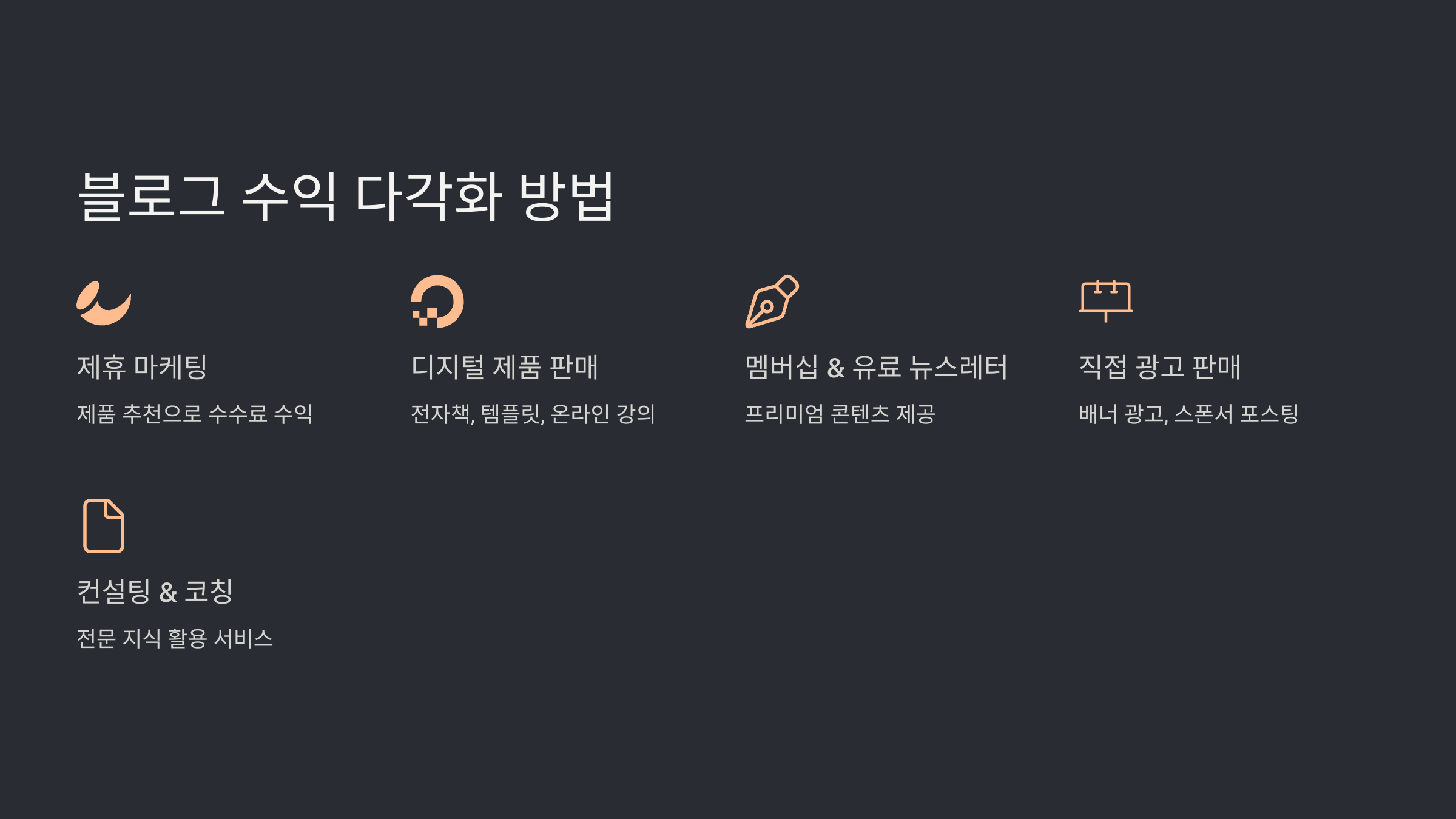 💡 블로그 운영 경험과 전문성을 활용하면 컨설팅 & 코칭으로 높은 수익을 창출할 수 있습니다.