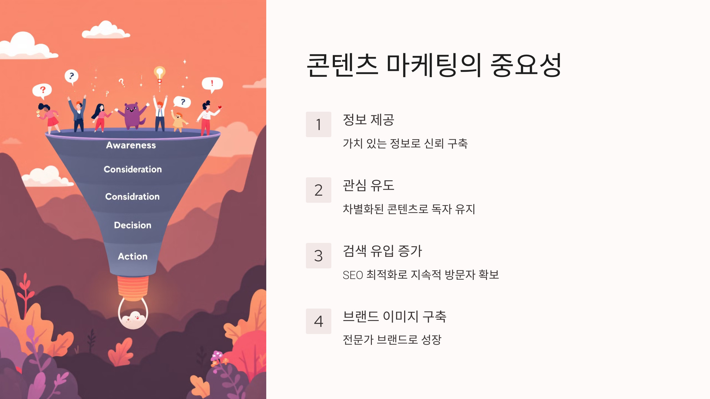 콘텐츠 마케팅의 핵심은 단순한 정보 제공이 아니라, 전략적으로 글을 기획하고 배포하는 것입니다.