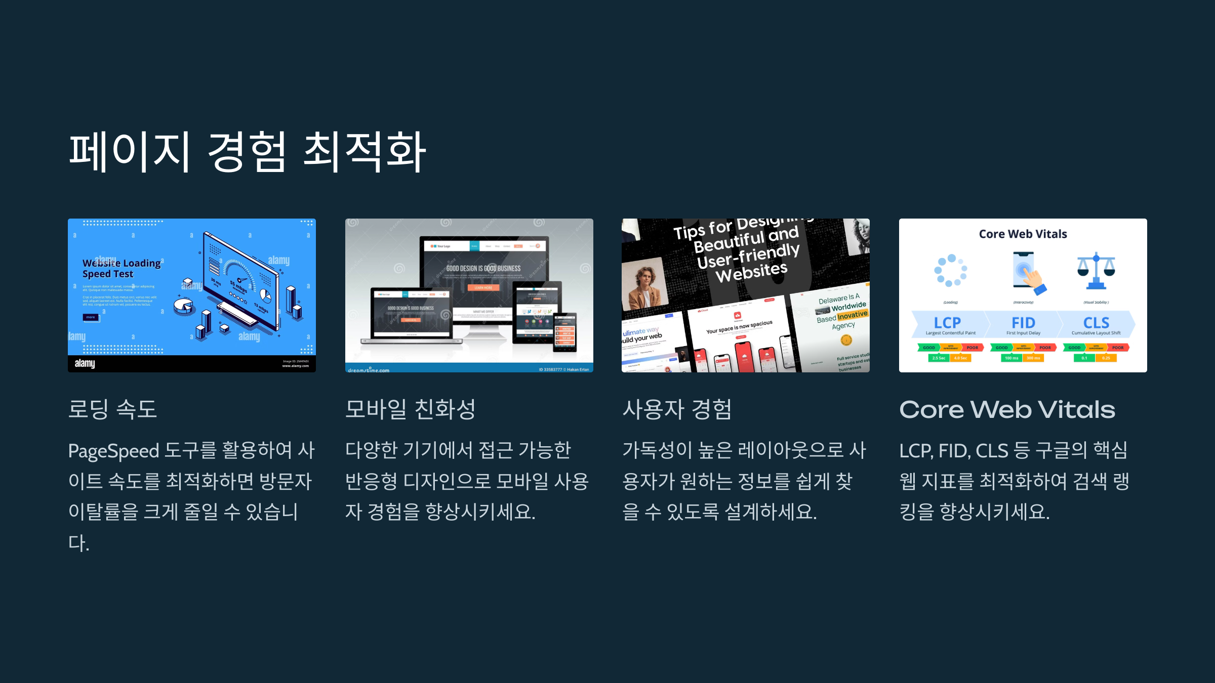 ✅ 구글은 페이지 로딩 속도, 모바일 친화성, 사용자 경험(UX)을 중요한 평가 요소로 고려하고 있습니다.