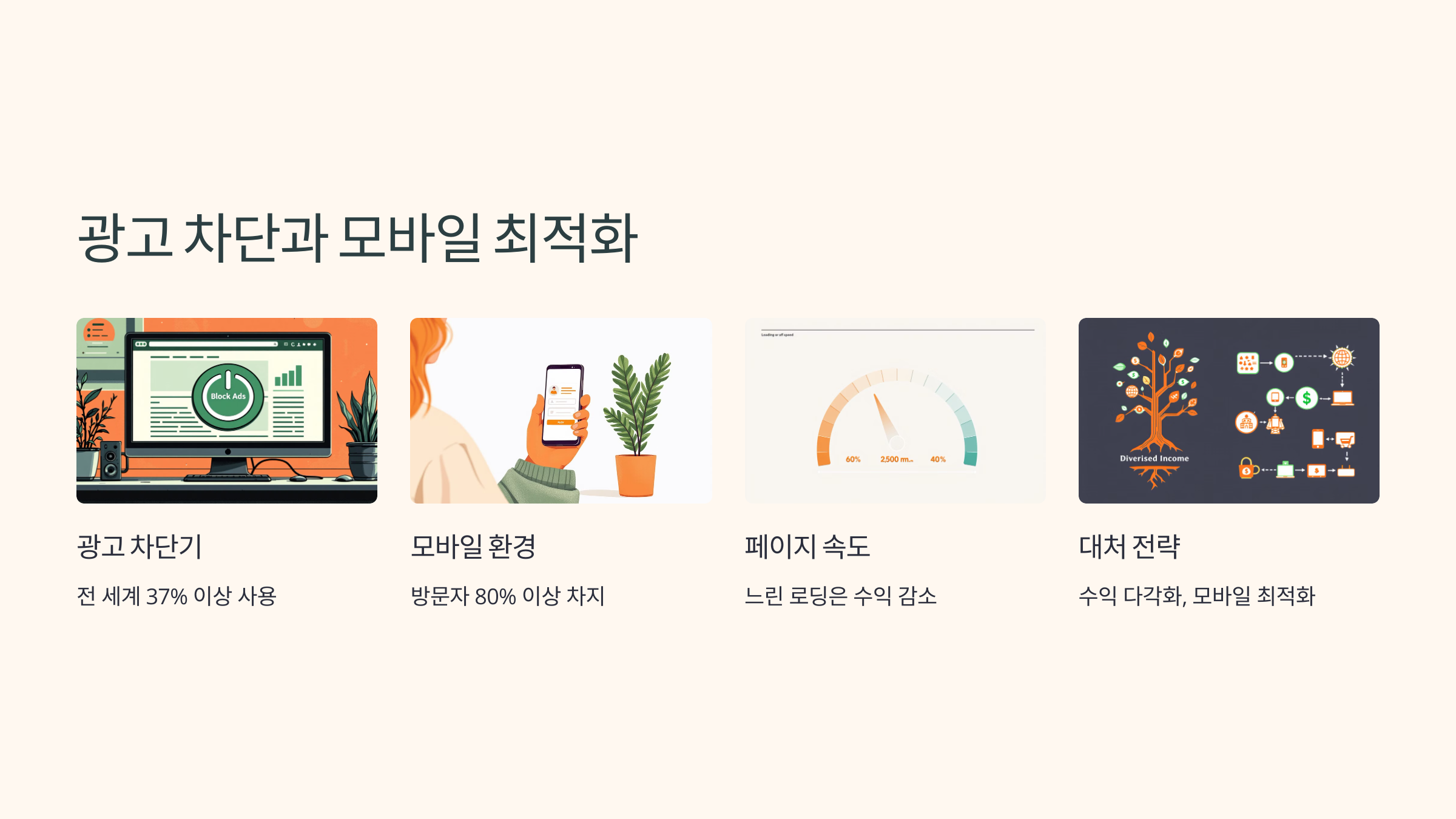 대처 전략: 광고 차단 여부에 관계없이 가치 있는 콘텐츠를 제공하고, 이메일 뉴스레터, 유료 콘텐츠, 파트너스 마케팅 등 다른 수익 구조를 함께 구축하여 리스크를 분산시키는 것이 중요합니다.