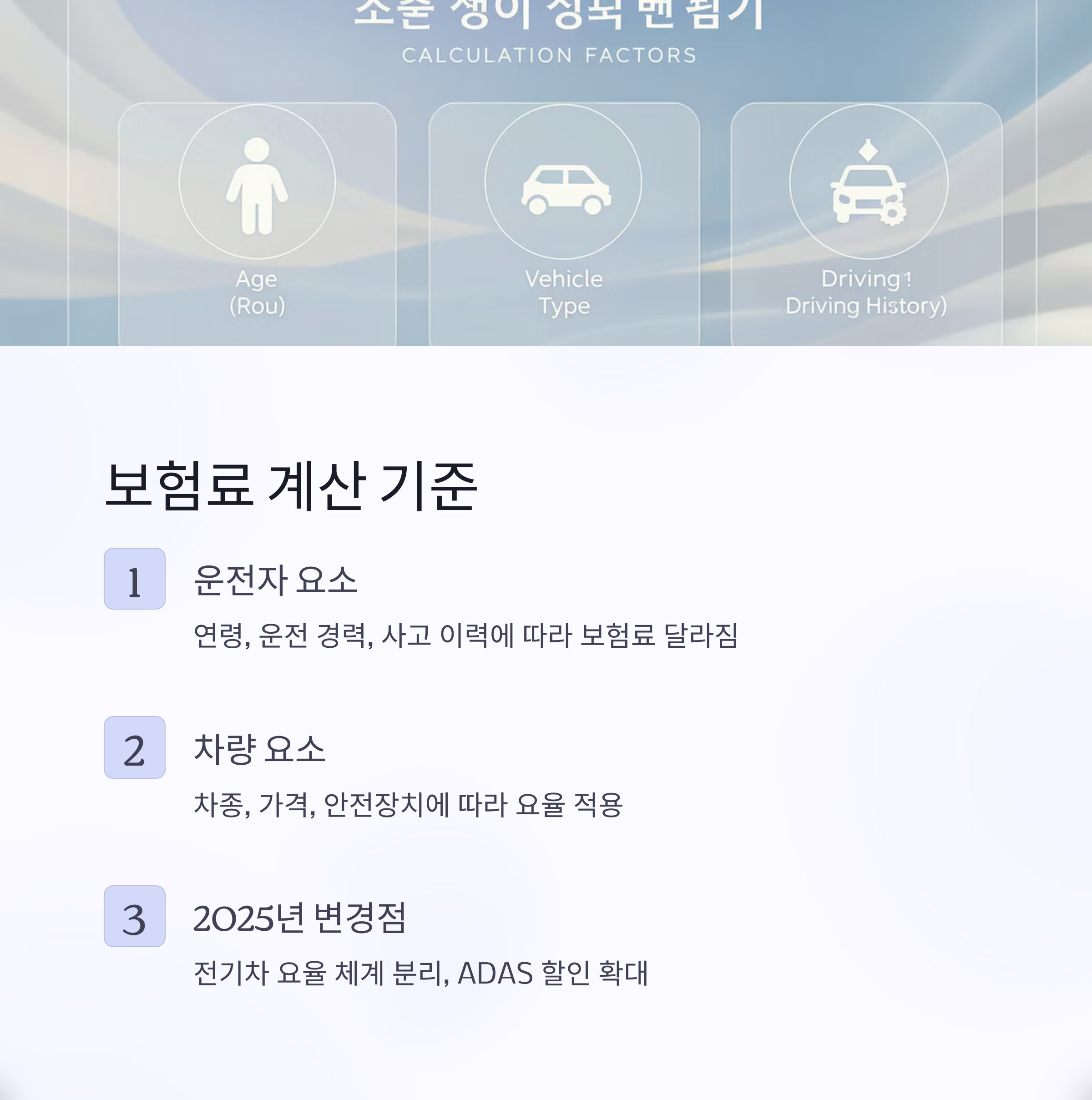 | 2025년 변경점 | 전기차 요율, ADAS 할인, AI 요율 반영 |
