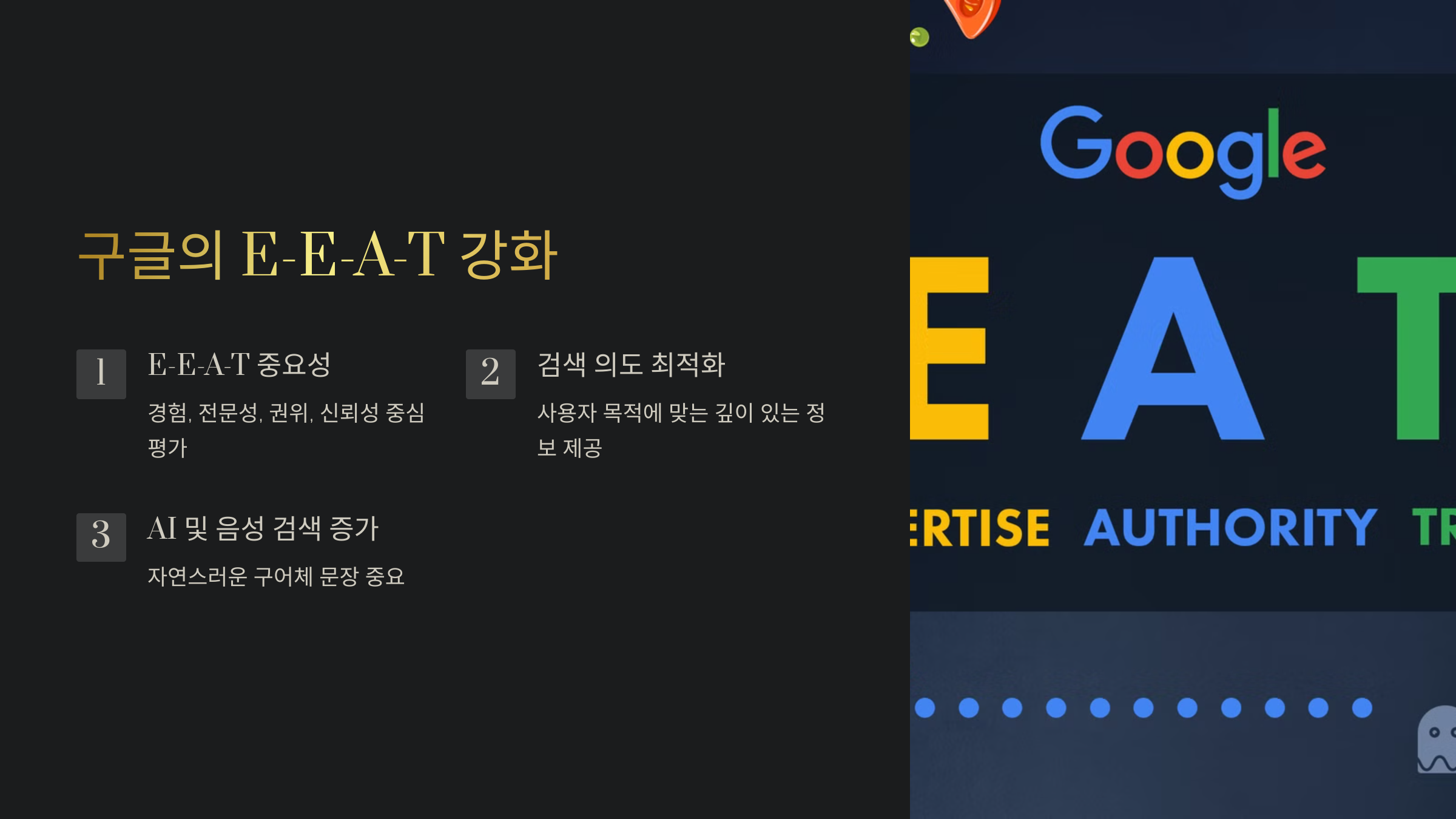 🔹 1) 구글의 E-E-A-T 강화 (Experience, Expertise, Authoritativeness, Trustworthiness)